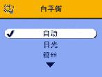 | 注意: | 在风景、特写和 PAS 模式下,您可以使用白平衡。 |