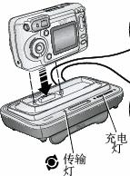 相机正确就位后,传输灯呈绿色闪烁。 如果充电电池在相机中,则第一个电池充电灯呈绿色闪烁。 相机现在由相机底座供电,而不由相机电池供电。