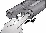 为使色带紧绷,将其推入墨盒卷轴,然后按顺时针方向旋转卷轴。