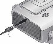 将存储卡阅读器上的 USB 接头插入位于多功能底座打印机侧面上的 USB 设备接口。