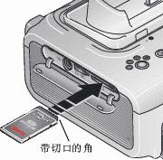 如图所示确定柯达 Wi-Fi 存储卡方向,然后将其推入存储卡插槽,并插到连接器上。