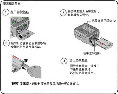 | 重要注意事项: | 只能使用带 符号的柯达色带盒和相纸套装。 切勿使用喷墨打印纸。 (柯达相纸套装由柯达产品零售商另售,也可访问该站点另购:www.kodak.com/go/accessories)。 |