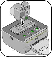 将您的数码相机插接到底座使您可以直接从相机打印照片,将照片从相机传输到计算机,或者对相机电池进行充电。