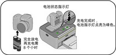 要进行充电,请使用交流变压器为多功能底座打印机充电。 由其打印机电池供电时,该多功能底座打印机将不会为相机电池充电。