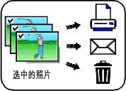 照片上将出现一个选中标记。 您现在可以对选中的照片执行打印、电邮、删除等操作。 您可以第二次按 OK(确定)按钮来删除选中标记。