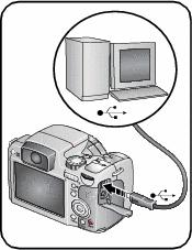 | 重要注意事项: | 如果您的相机随附了柯达 EasyShare 底座,请使用底座将照片传输至计算机。 (有关详情,请参阅相机配件和底座用户指南。)如果您没有 EasyShare 底座,请使用随附的 USB 电缆 (U-8)。 |