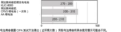 电池性能在 5° C(41° F)以下温度条件下会降低。 在寒冷的天气中使用相机时请带上备用电池,并对它们进行保温。 请不要丢弃无法工作的冷电池,当它们恢复至室温,这些电池或许还可以使用。