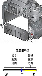 变焦指示灯将显示变焦状态。