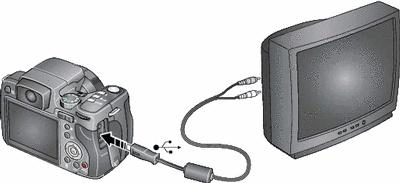 您可以在电视、计算机显示器或任何配备视频输入的设备上显示照片/录像。 要将相机连接到电视,请使用可选购的 A/V 电缆(请访问 www.kodak.com/go/z812accessories)。